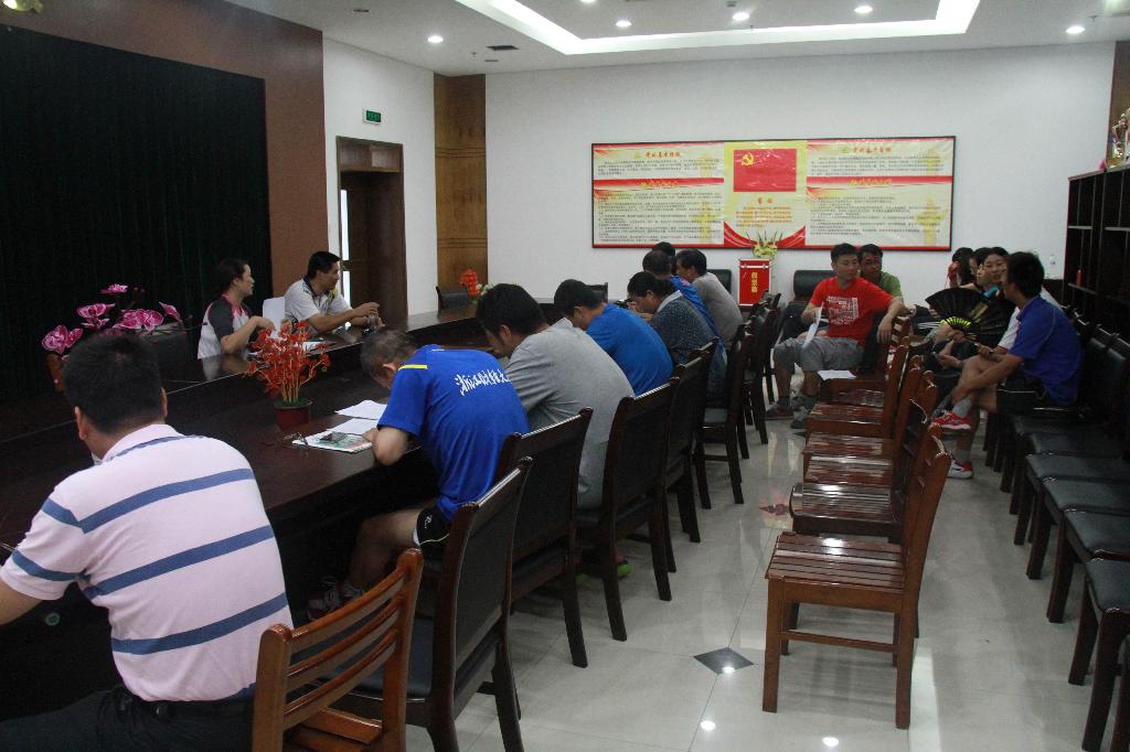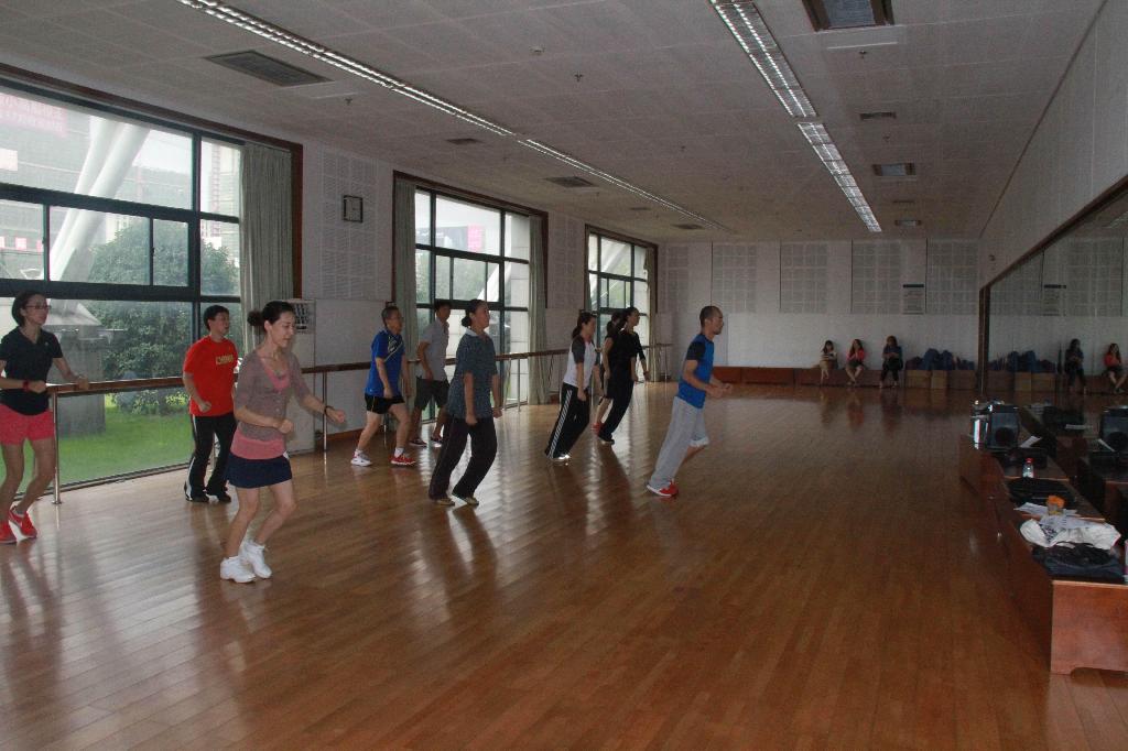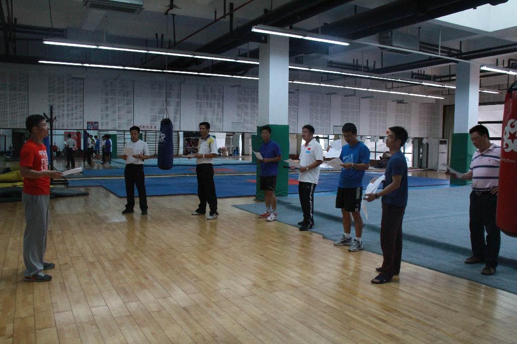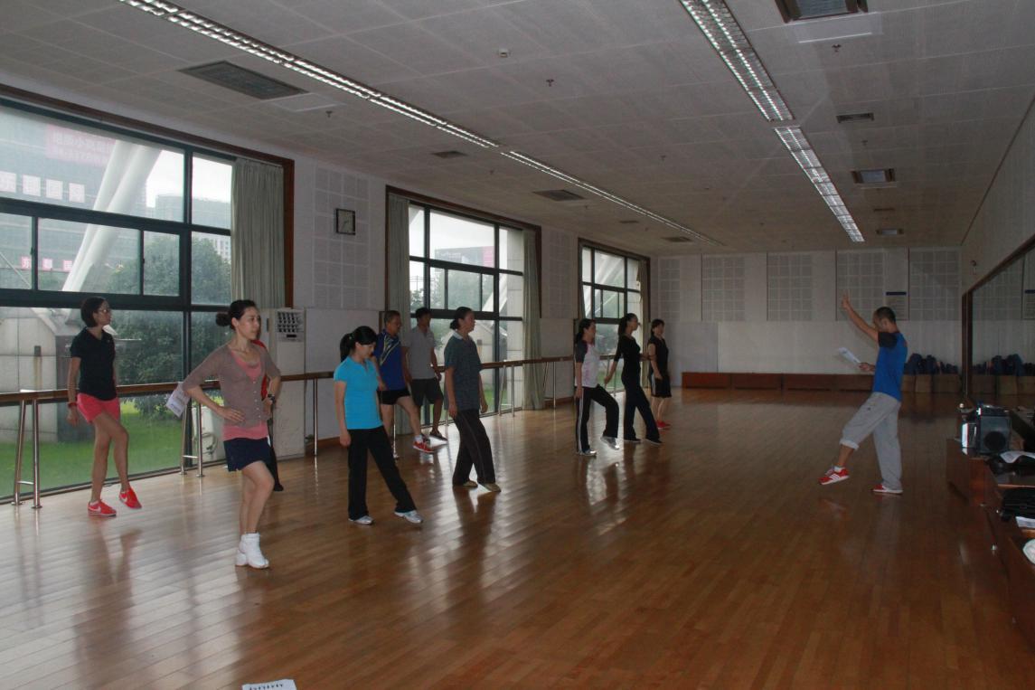 在前期的精心准备下,2013年9月24日下午1:30,体军部如期召开了主题为“体育基础课教学研讨”校级教研活动,主要内容是以探讨一年级武术、健美操教学内容、教学评价为主,主要形式是以集体讨论、集体备课、集体学习为主。参加人员由体军部全体教师组成。整个活动由叶东惠老师主持,姚智勇、应昌达两位老师具体负责实施。具体活动分为两个部分:理论引导、实践演练。活动地点分别安排在:体育馆贵宾室、体育舞蹈房、武术房。