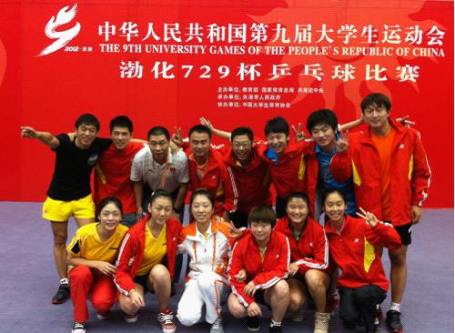 中华人民共和国第九届大学生运动会乒乓球比赛于9月14日在天津现代职业技术学院落下帷幕,本次比赛高手如云,代表着我国大学生乒乓球运动的最高竞技水平。我校工商学院11级学生蒋鸥同学,在乒乓球团体比赛中发挥出色,季军争夺战中,浙江代表团3:1力克江苏队,夺得一枚宝贵的铜牌,这也是我省乒乓球团体第一次站上领奖台,实现了乒乓球项目在大运会比赛中零的突破。