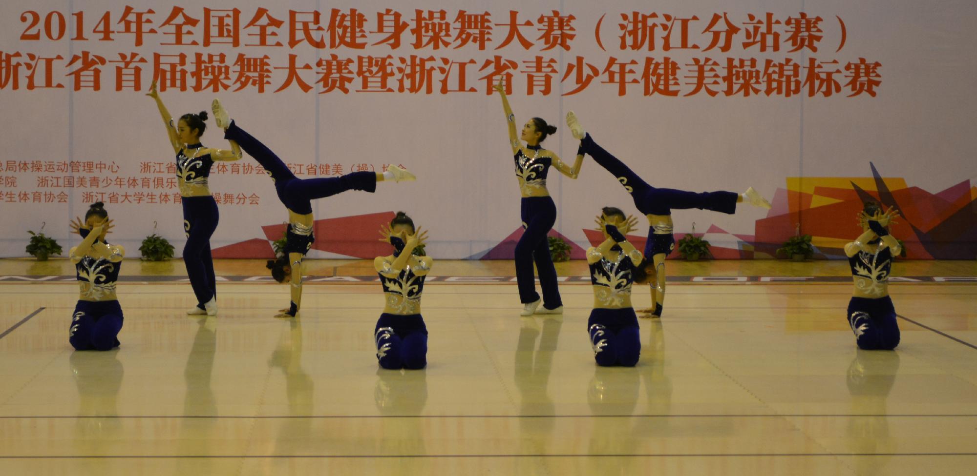 浙江省首届操舞大赛暨浙江省青少年健美操锦标赛于11月20-22日在中国美术学院举行。我校健美操队以锻炼队伍、寻找差距为目的,积极参赛,在参加院校组所有的9个单项比赛中共取得了五个第一名,三个第二名和一个第三名的优异成绩。