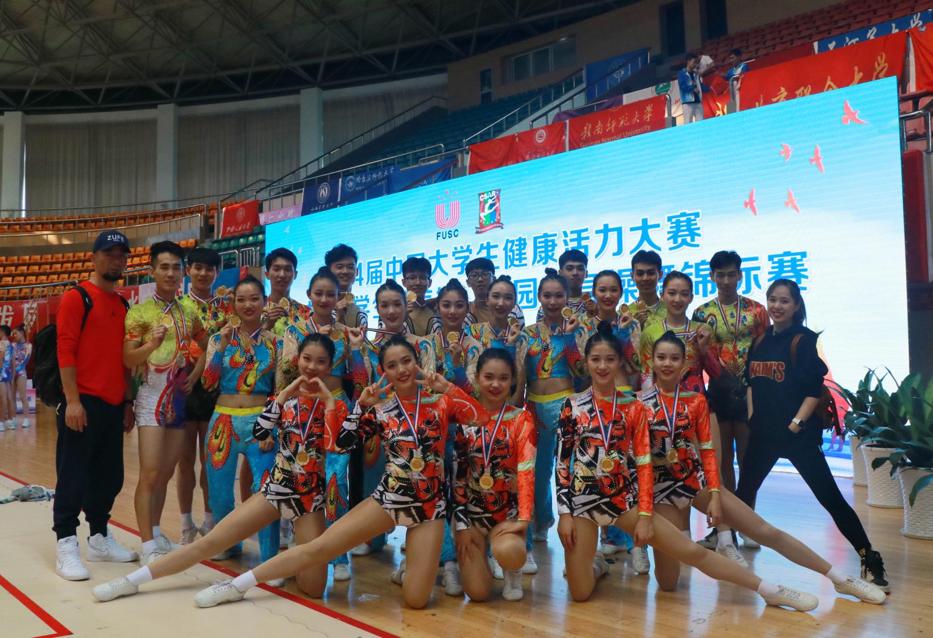 10月24日至29日,第十四届中国大学生健康活力大赛暨中国大学生健美操锦标赛在淳安举行。经过激烈角逐,我校运动健儿斩获7金1银1铜,并获团体积分赛第一名的好成绩。