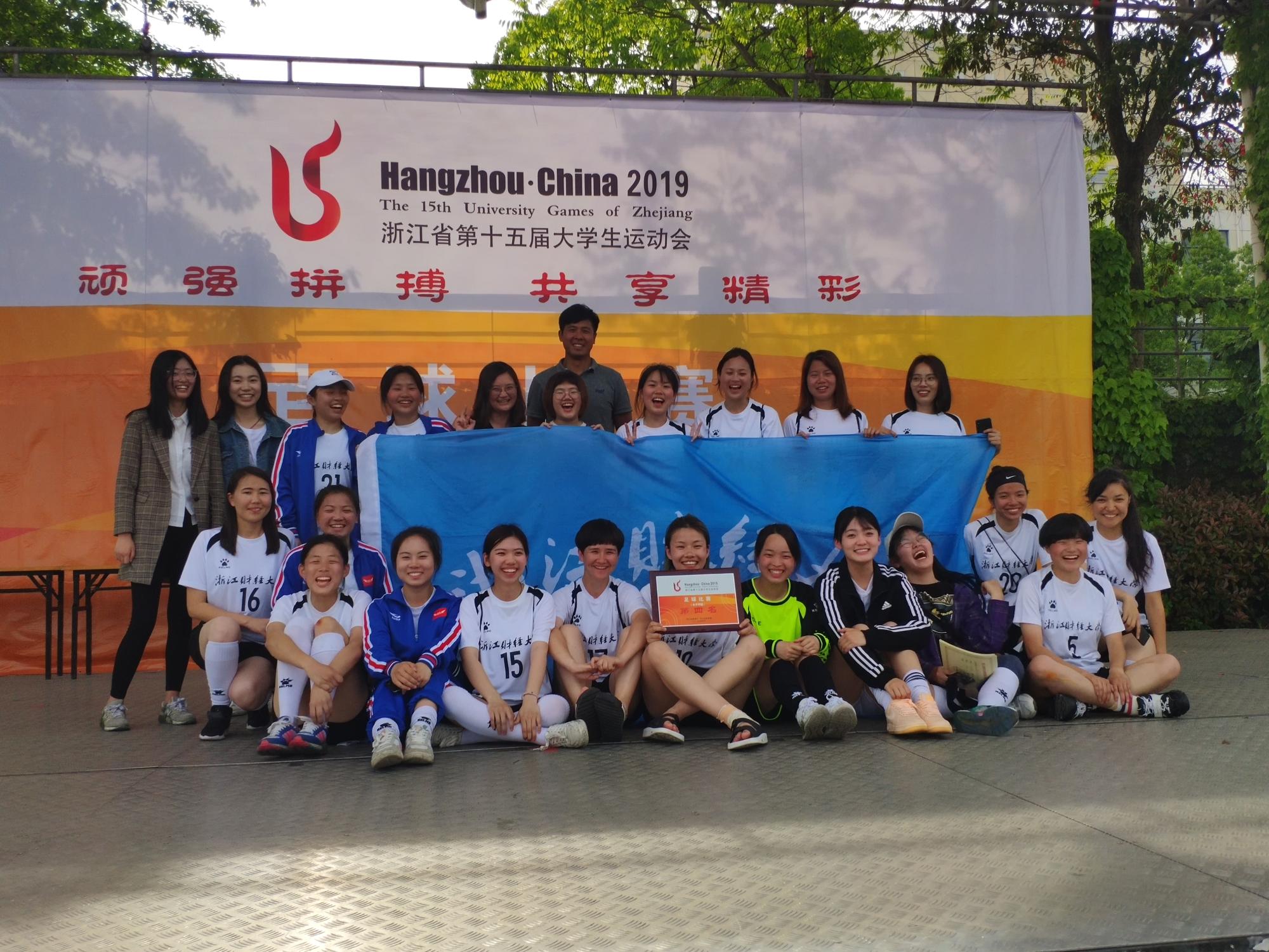 近日,浙江省第十五届大学生运动会足球比赛(女子甲组)在浙江农林大学举行。经过激烈角逐,我校女子足球队取得第四名的历史佳绩。