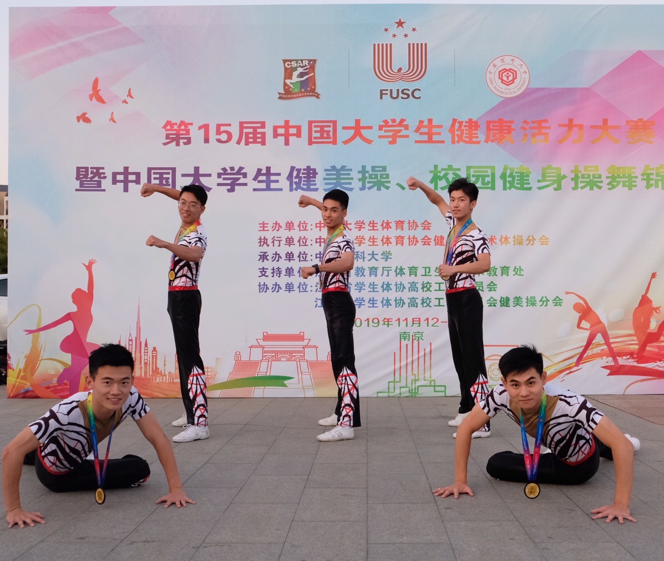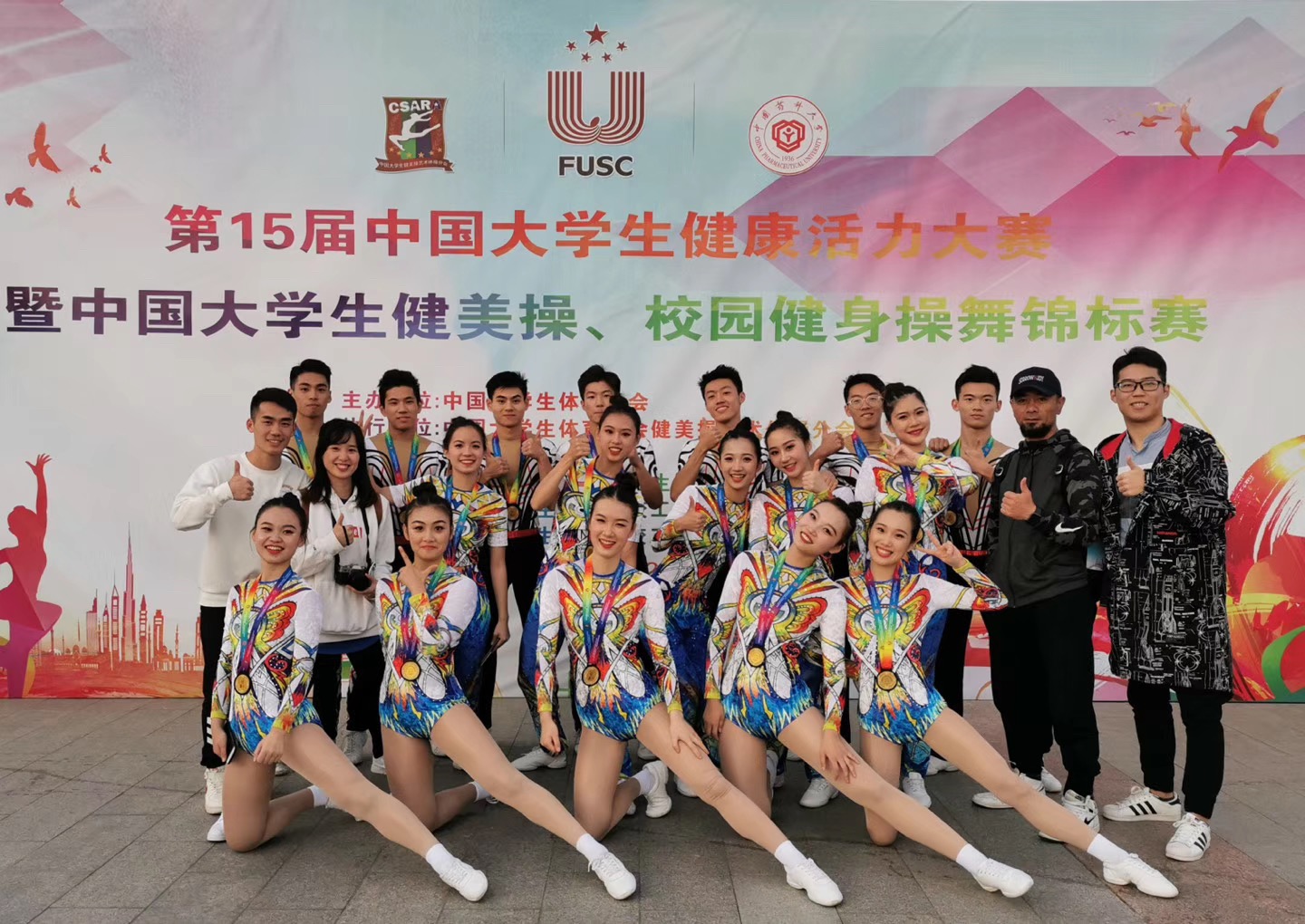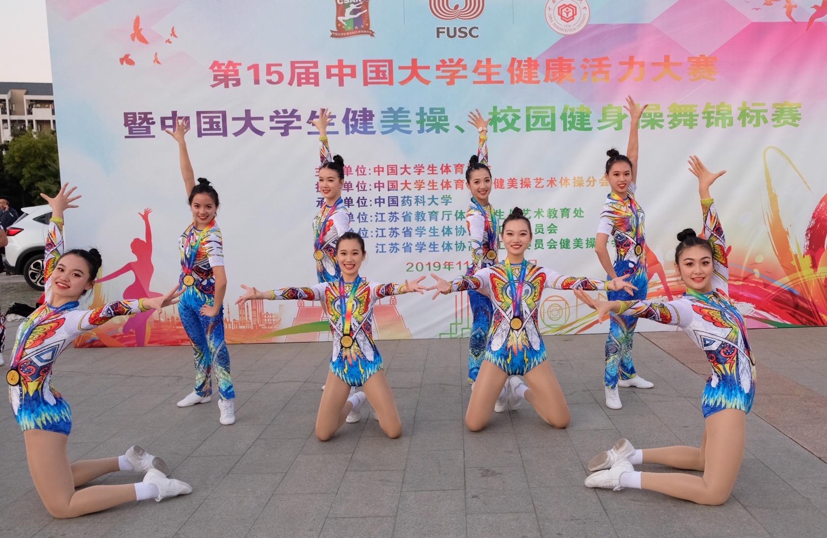 11月12日至18日,第15届中国大学生健康活力大赛暨中国大学生健美操、校园健身操舞锦标赛在中国药科大学举行。经过激烈角逐,我校运动健儿斩获4金1银1个第四1个第六的优异成绩。