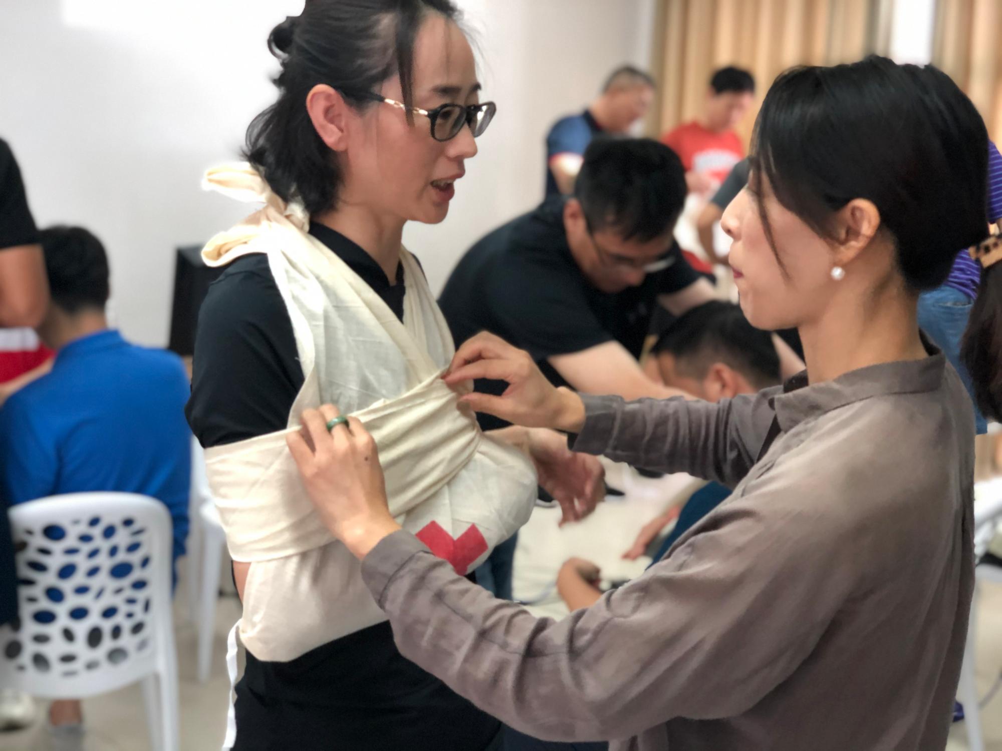 邀请了浙江省红十字救护培训中心为全体教职工进行了一场别开生面的应急救护培训。培训主要以“心肺复苏现场急救、创伤救护、伤口包扎”为主题,采取“理论授课+实践操作+考核”相结合的方式进行。培训现场,老师们专心听讲,踊跃提问,积极参与实践操作,并顺利通过了考核,为本学期开启应急救护普及教学打下了基础。