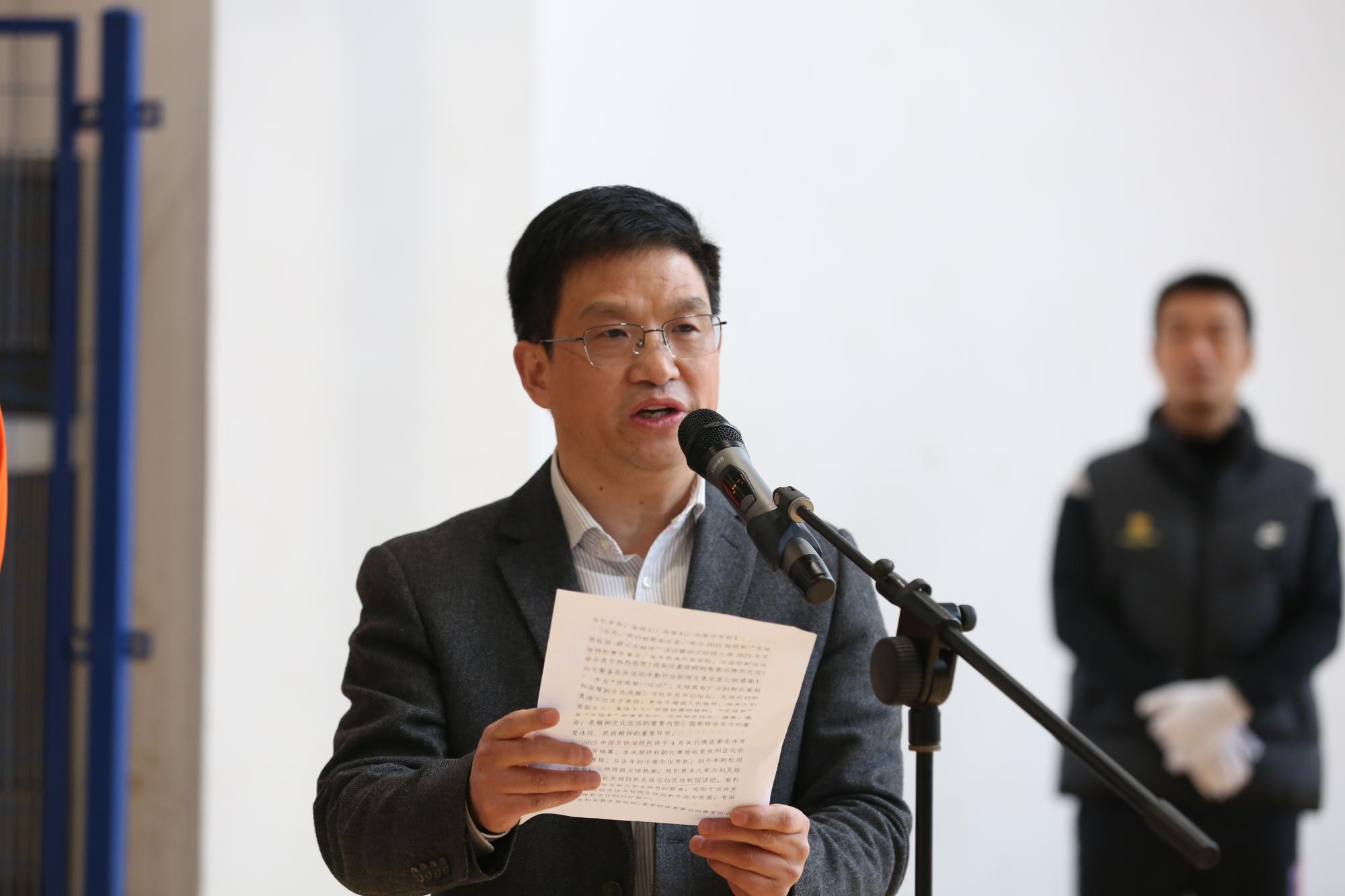 2023年足球锦标赛开幕式在下沙校区举行。校党委委员、副校长董进才,第19届杭州亚运会黄龙场馆群运行团队常务副指挥长、浙江省黄龙体育中心主任沈斌,2023超级杯山东泰山俱乐部球员陈哲宣、买乌郎·米吉提及177漫画