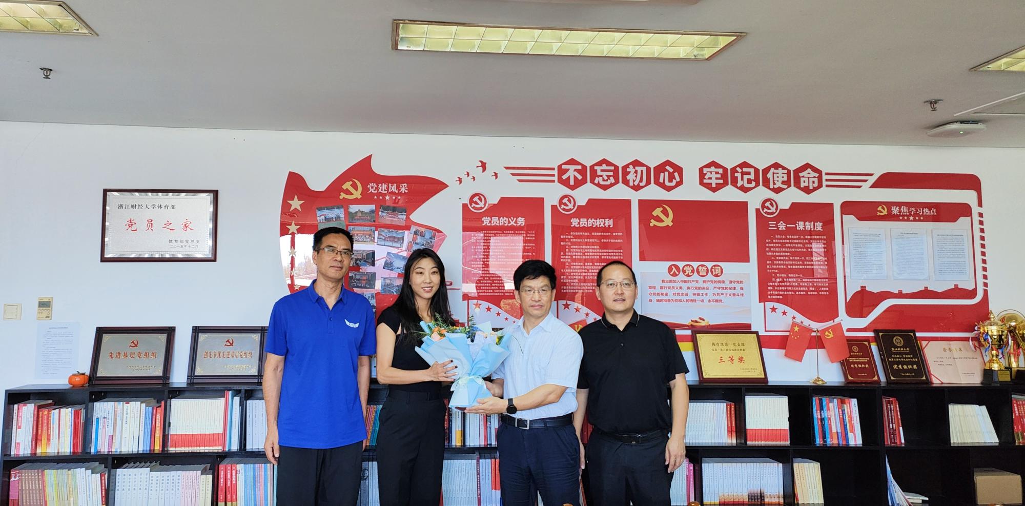 董进才副校长向黄芬芬老师献上鲜花,感谢其为177漫画 体育事业及体育舞蹈项目的辛勤努力与付出。同时,董校长热情询问了部门暑期工作及开学准备情况,并充分肯定了我校的体育工作。
