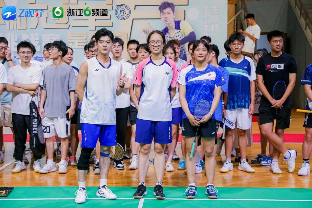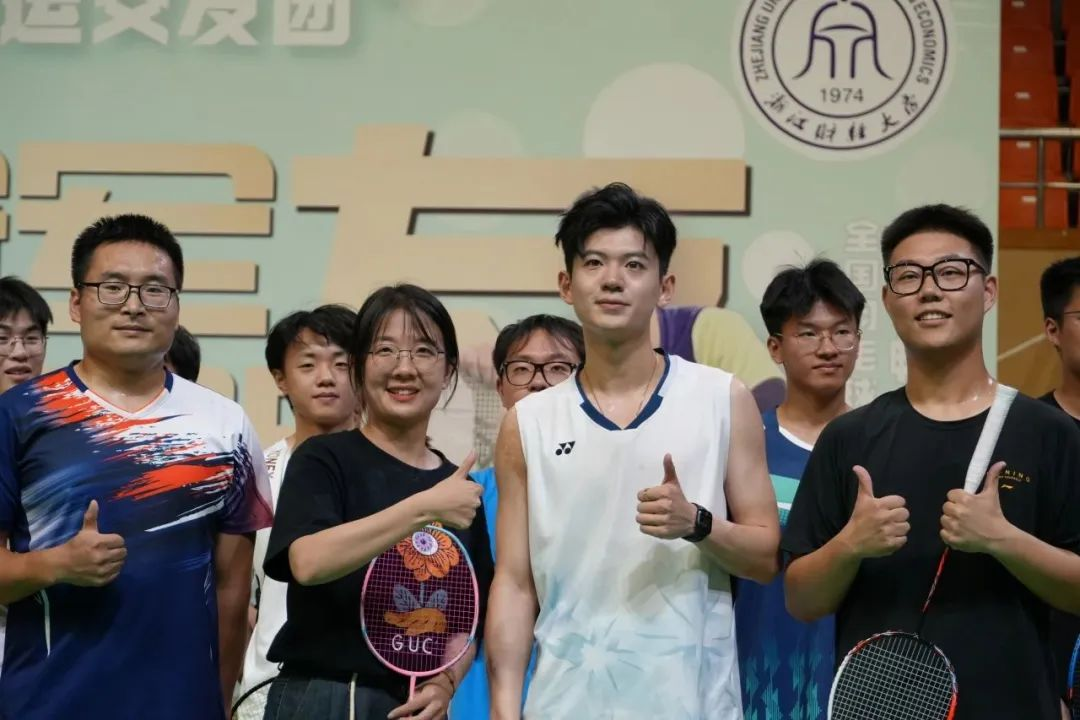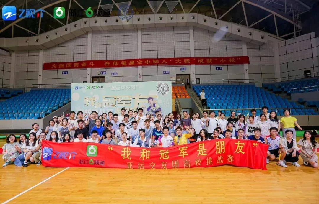 9月19日,“我和冠军是朋友”亚运交友团高校挑战赛第二站在我校下沙校区举行。全国羽毛球锦标赛冠军朱俊畅与我校学生互动切磋。校党委委员、副校长董进才,浙江电视台民生休闲频道总监钱群出席活动并开球。来自各学院百余名师生参加了本次活动。