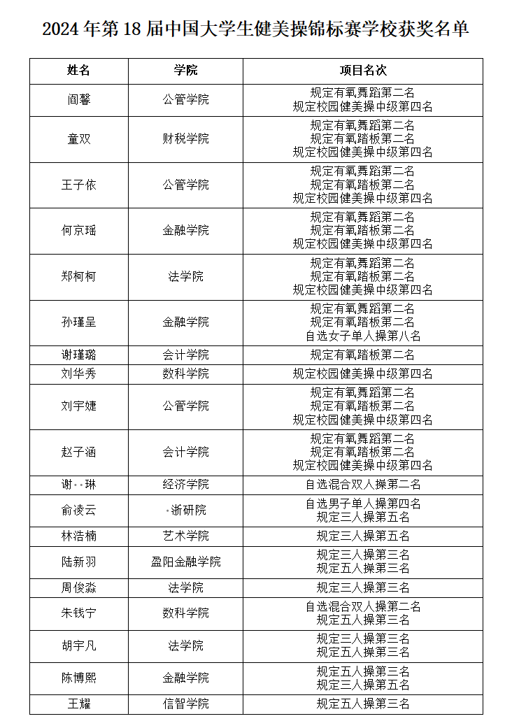 经过三个比赛日的激烈角逐,我校健美操健儿们以3银2铜,2个第四名,1个第五名,1个第八名,总分获得甲组团体总分第一名。