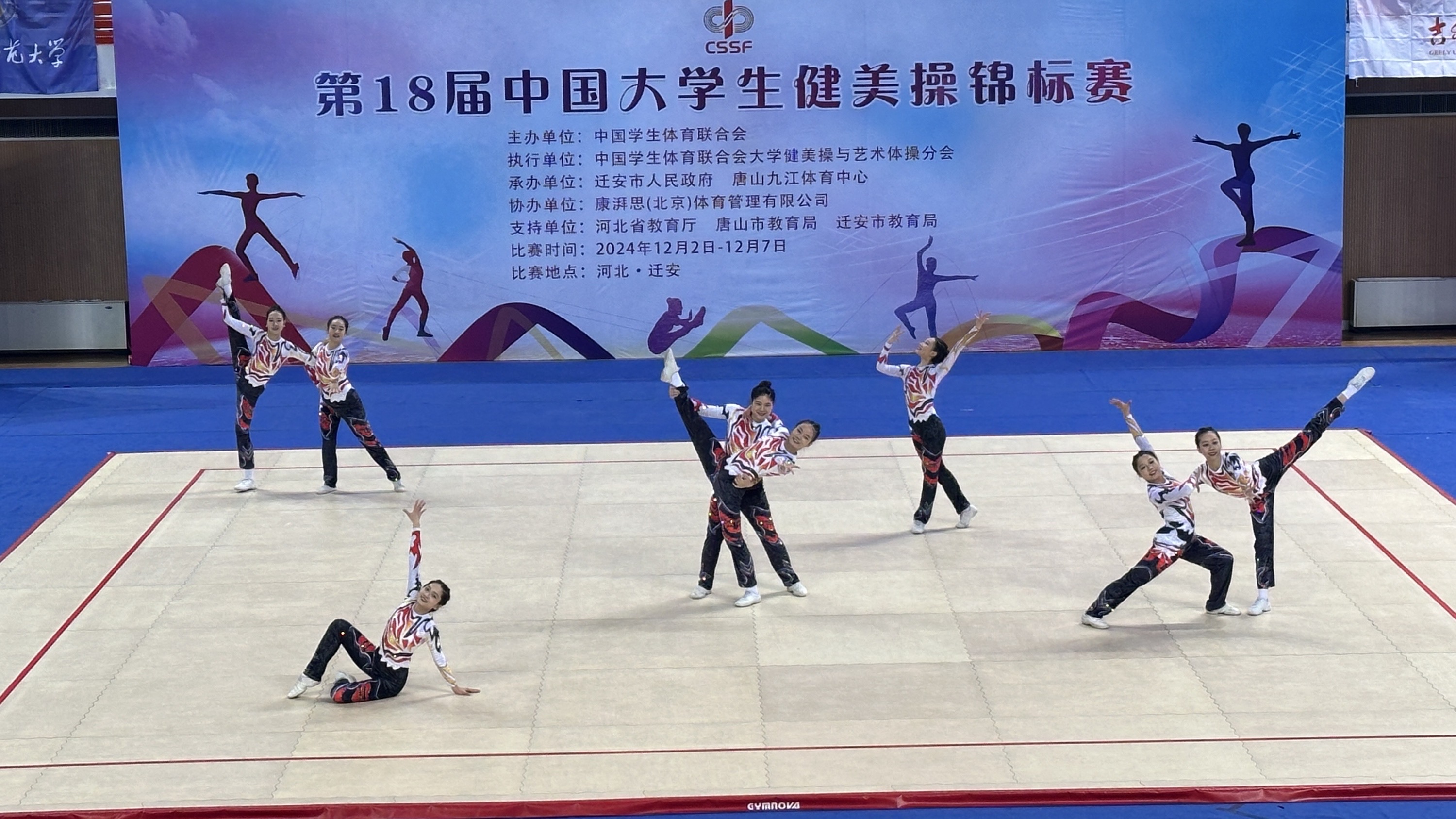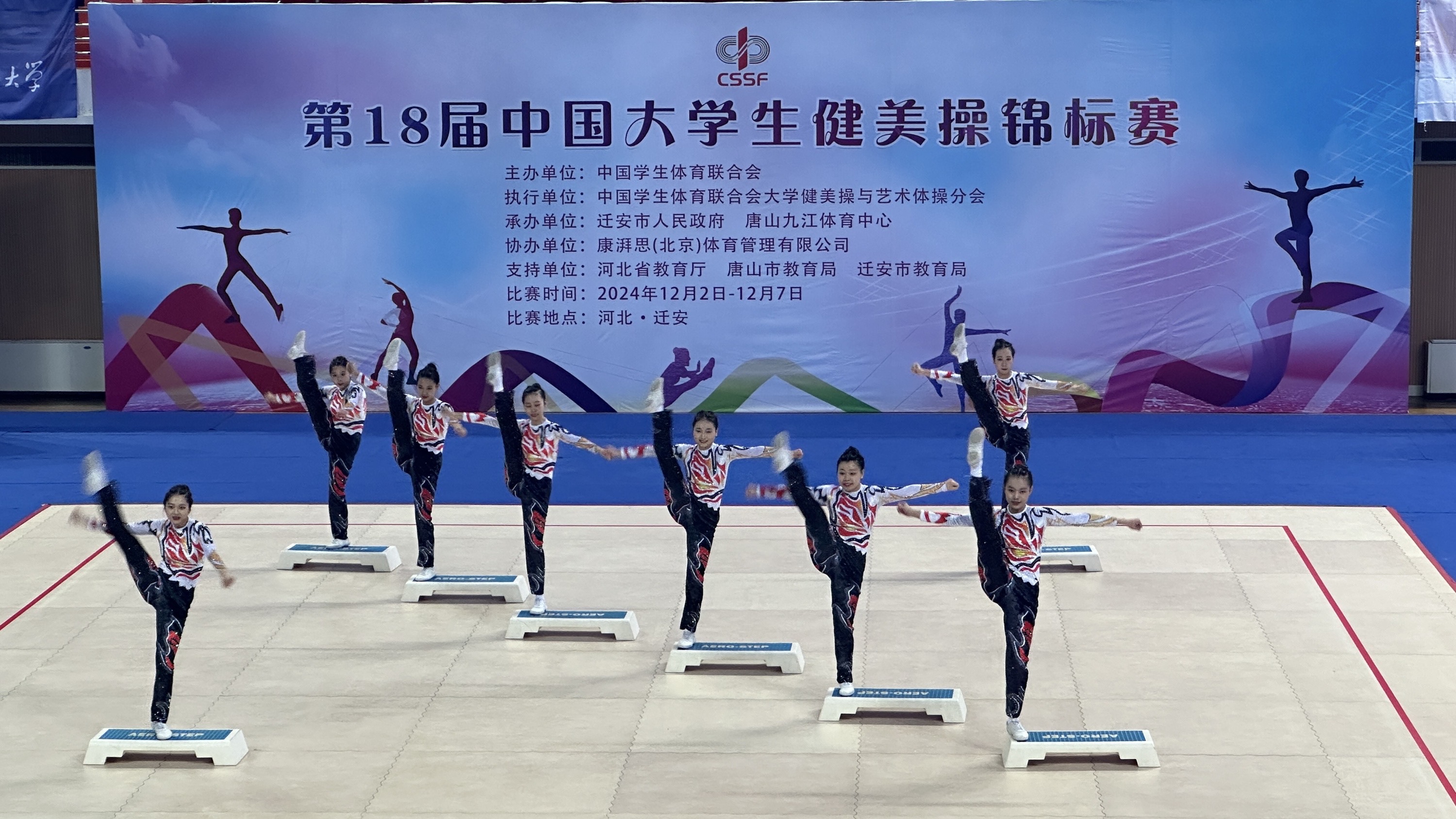 本届比赛由中国学生体育联合会主办,中国学生体育联合会大学健美操与艺术体操分会执行,迁安市人民政府、唐山九江体育中心承办。吸引了来自全国各地45所高校的640余名运动员参加,我校共派出19名运动员,参加9个项目的比拼。