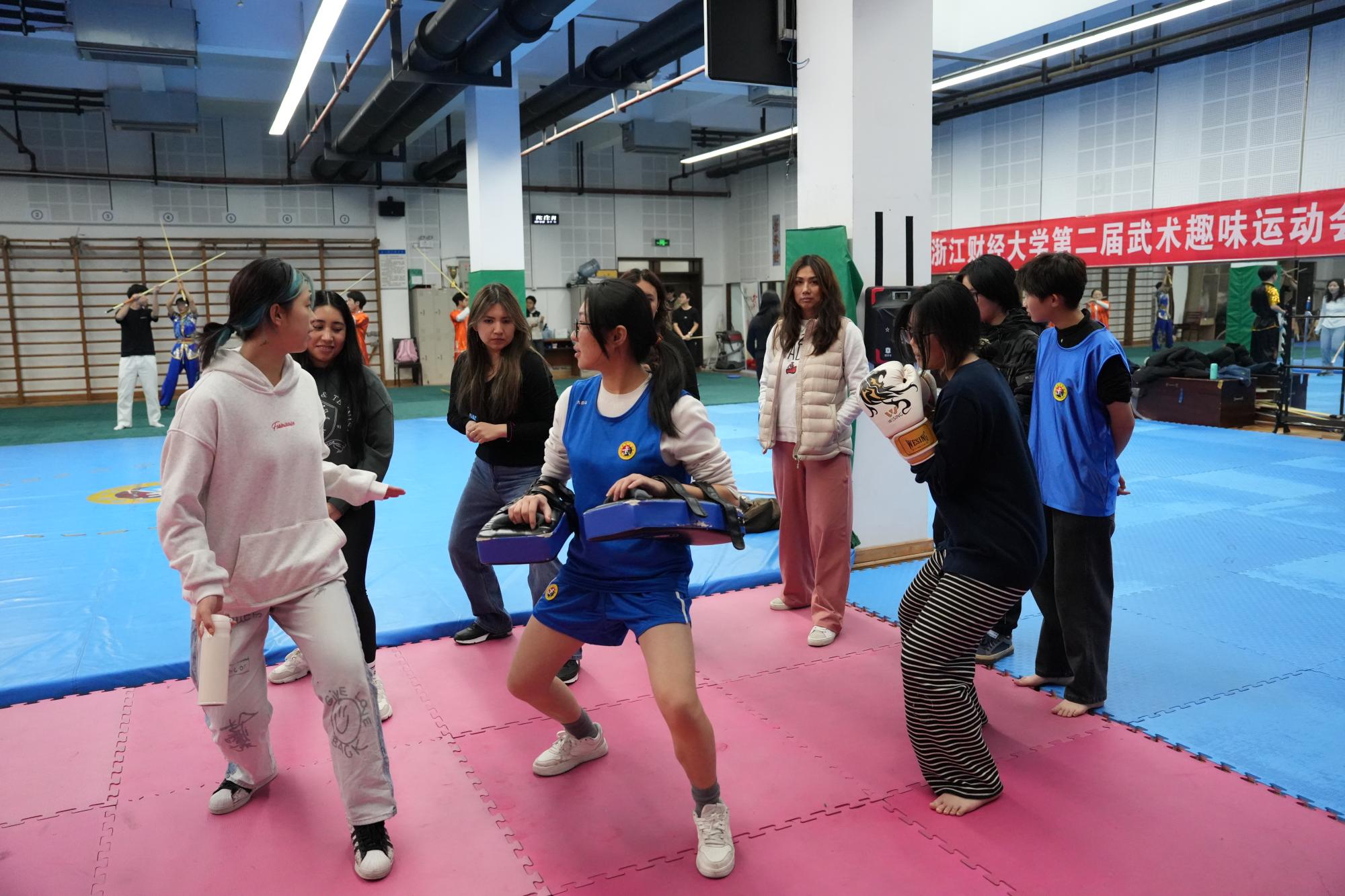 近日,11位美国加州州立大学北岭分校青年来到浙财体育馆,开展“走进浙江中美青年文化交流营”之中华武术文化交流与体验活动。