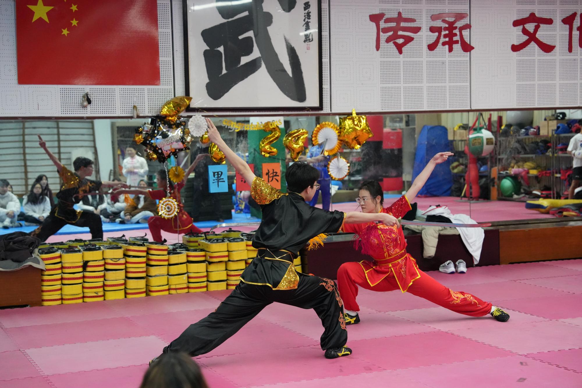在杨连芳和应昌达老师的指导下,美国师生们集体学习了剑术和太极拳,随后根据兴趣与武术队队员自由交流。