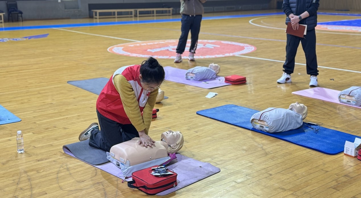 随后,培训人员现场演示了心肺复苏和AED除颤的实操步骤,强调了动作要领,大家在专业人员指导下认真进行实操演练,在巩固学习中进一步规范动作细节。