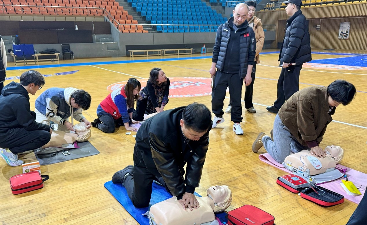 于3月11日下午在西体育馆开展应急救护培训主题教研活动,部门全体教职工和游泳馆全体救生员参与培训。