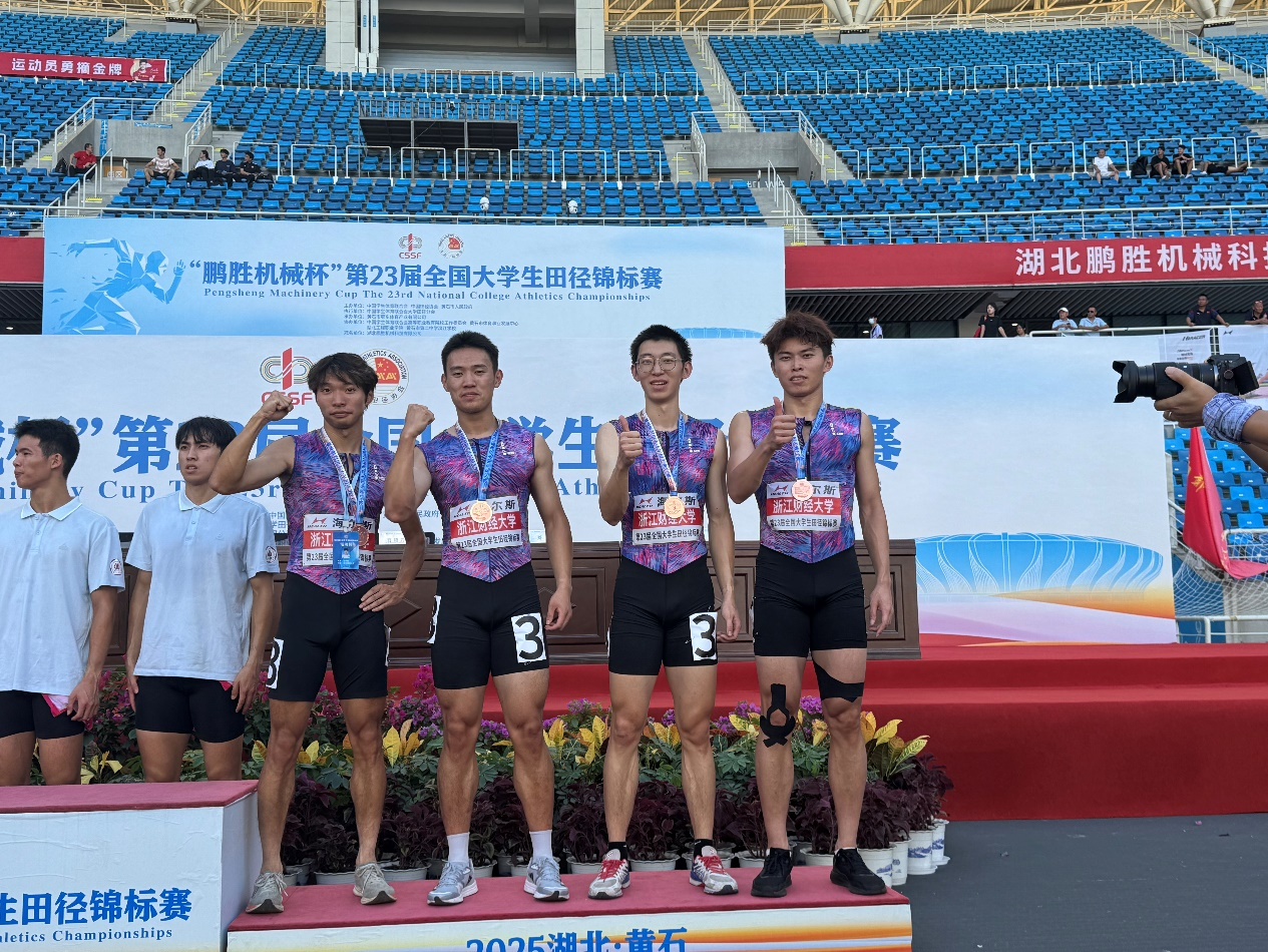 8月10日至15日,全国第二十三届大学生田径锦标赛比赛在湖北省黄石市举行。经过6天的精彩角逐,我校田径队在赵凌强教练的带领下,夺得甲组男子4×400米接力第三名。