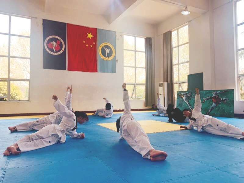 校武术跆拳道锦标赛,日常训练,对拳腿法可以掌握一定的连贯性,使跆拳道训练小组成员具有一定的表演能力。