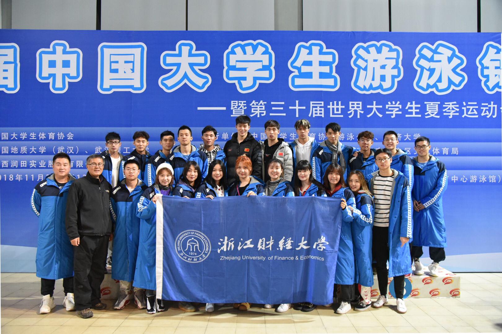 游泳队组建于2006年,后经教育部批准于2010年成立高水平游泳队。队伍秉承体教融合、科学训练、德才兼备、突出风格的宗旨,招收全国优秀游泳人才,积极参与全省及全国各类赛事,并取得了优异成绩。在各级领导的高度重视下,逐步发展成为一支全国知名、浙江顶尖的高水平队伍。曾获省级赛事180金190银103铜,全国赛事56金48银42铜,国际赛事5金5银2铜,1个第四,1个第五;破浙江省大学生纪录32项,全国纪录23项(全国大学生19项,全国残疾人运动会4项),亚洲纪录2项(韩国亚太区聋人运动会),蝉联三届全国大学是游泳锦标赛甲组团体总冠军。