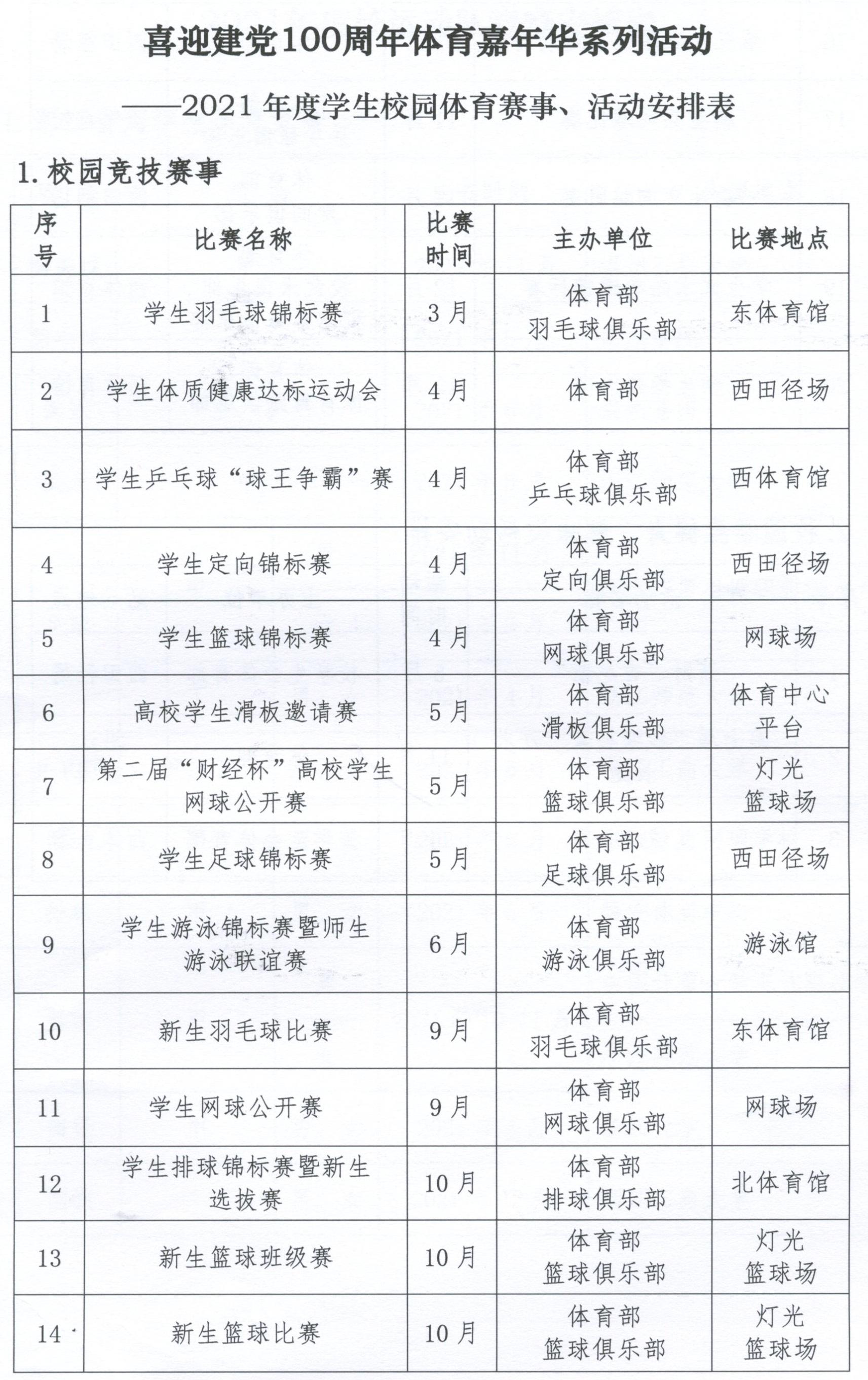 喜迎建党100周年体育嘉年华系列活动——2021年度学生校园体育赛事、活动安排