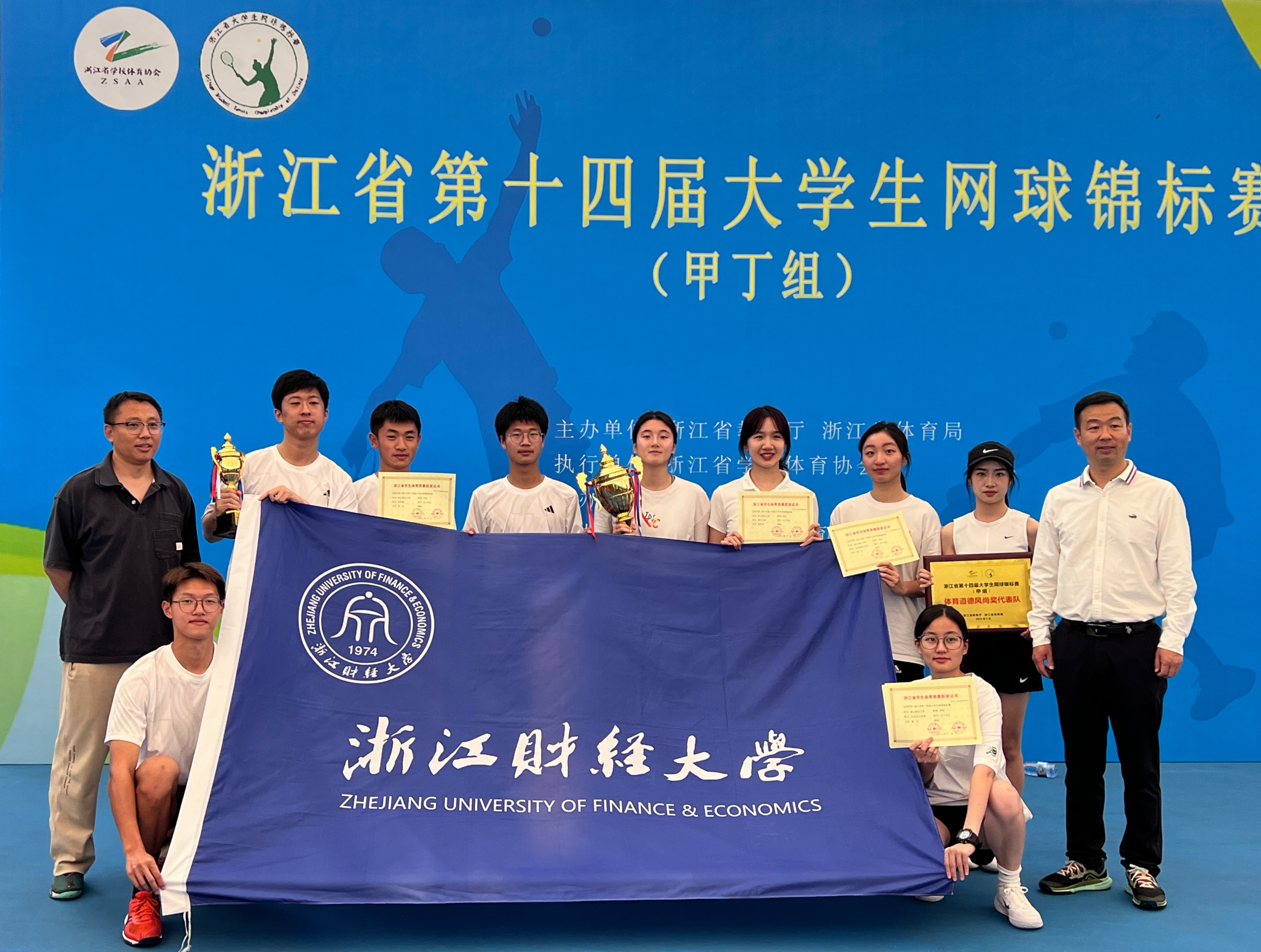 5月6日至11日,浙江省第十四届大学生网球锦标赛(甲丁组)在浙江大学举行。我校运动健儿不畏强手,奋勇拼搏,包揽女子项目2金1银,取得女子团体冠军、女子单打冠军、女子双打亚军、女子单打第四名、男子团体第八名的佳绩。177漫画