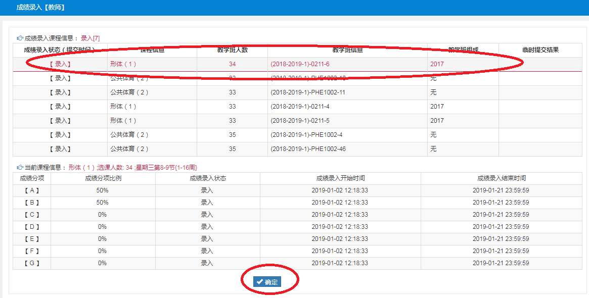 2、选中录入的班级-点击“确定”