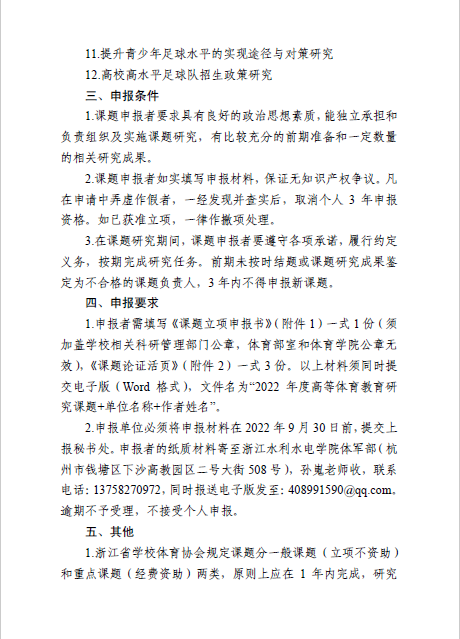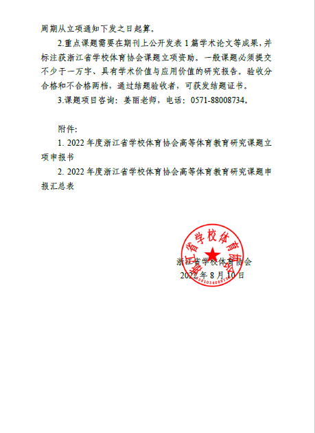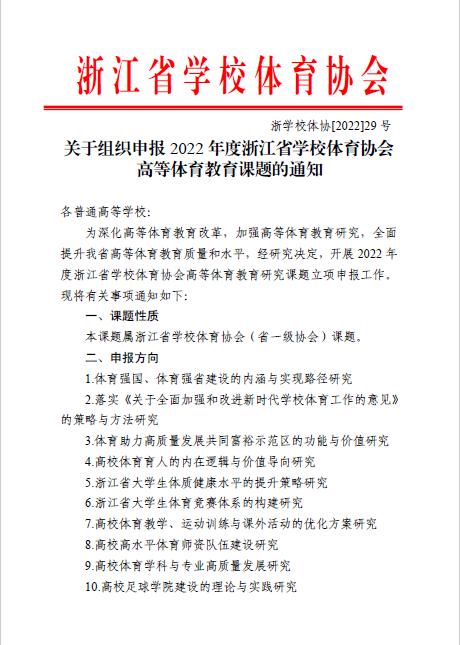 关于组织申报2022年度浙江省177漫画 体育协会高等体育教育课题的通知