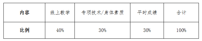 学生返校后课堂教学周数为6周,教学内容以身体素质为主,专项技术为辅,考核内容、标准统一制定。