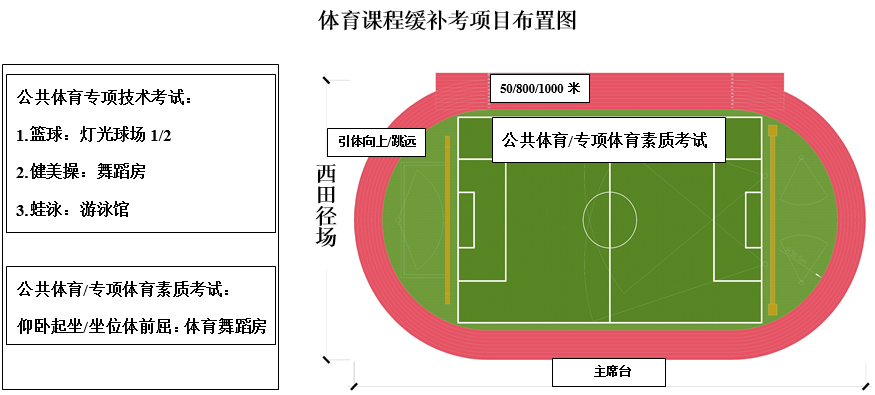 教务处关于2021-2022学年第二学期课程缓补考的通知要求,体育课程为实践课,因新生军训,考试场地受限,体育课程公共体育(1)、公共体育(2)和专项体育(2)缓补考时间调整至第二周周二(9月13日)13:30-14:00,具体作如下安排: