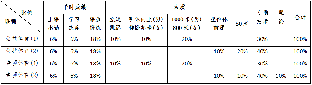 五、体育课程的考核项目有那些?比例分配是怎样的?