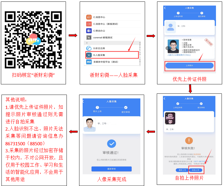 晨跑、自由跑均采用人脸识别方式签到,必须先进行人脸认证,否则锻炼数据无法采集。人脸采集信息过程如下: