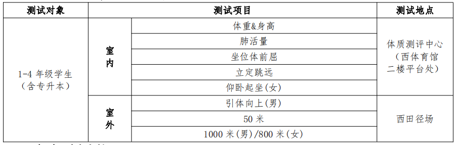 3、所有项目均为必测项目,缺任何一项将无体测成绩。