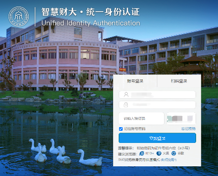 步骤一:通过PC(电脑)端,输入//tc.177comics.com/ggtypt链接,跳转到智慧财大统一身份认证平台,输入统一身份认证账号密码点击登录;