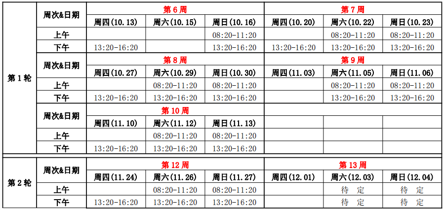 第1、2轮测试时间见下表,第3轮测试时间在2022-2023学年第二学期另行通知。