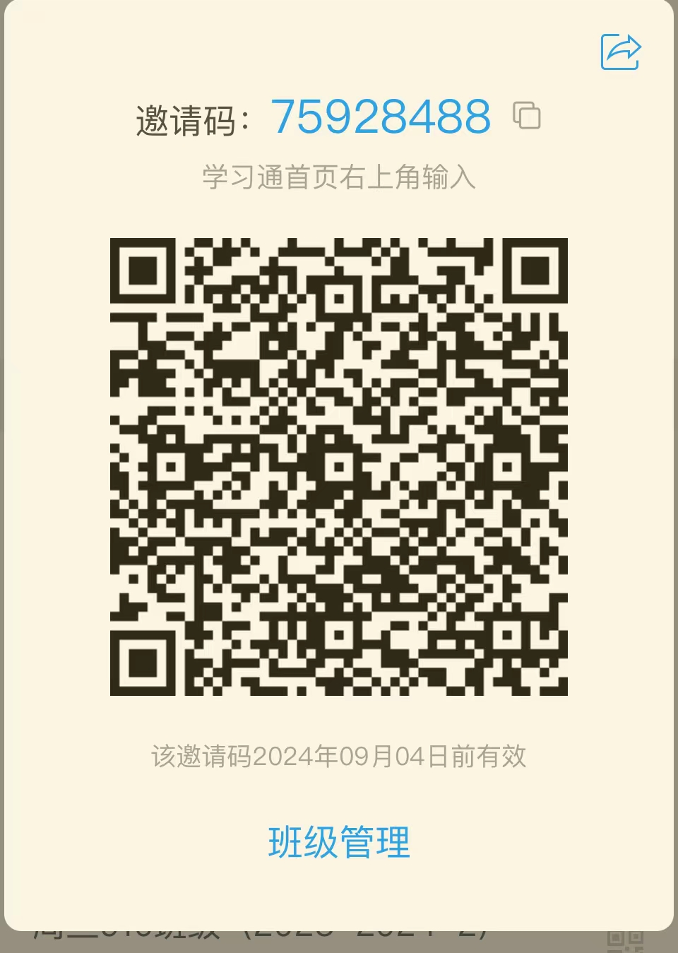注:请保健课堂学生下载APP学习通,要求实名注册,然后打开学习通,点击右上角“扫一扫”扫下方班级码进班,体育锻炼保健课堂的教学安排、内容、考核办法等相关教学事项在学习通班级群通知!
