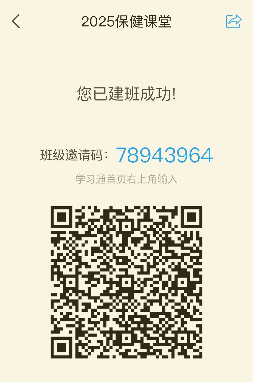 注:请保健课堂学生(体测免测申请通过后自动划入保健课堂)下载APP学习通,并要求实名注册,然后打开学习通,点击右上角的“扫一扫”扫下方班级码进班,体育锻炼保健课堂的教学安排、内容、考核办法等相关教学事项在学习通班级群通知!