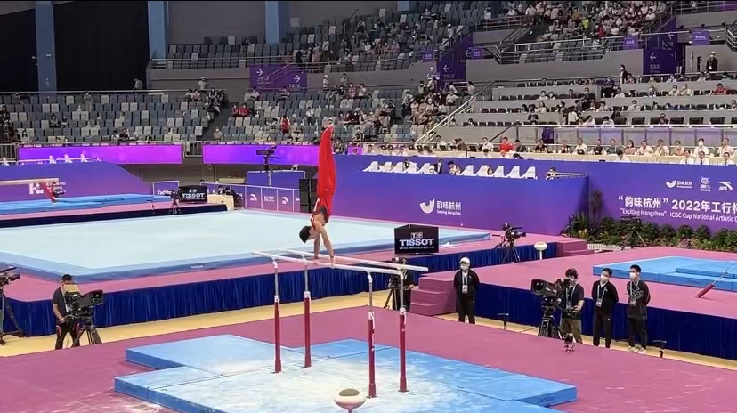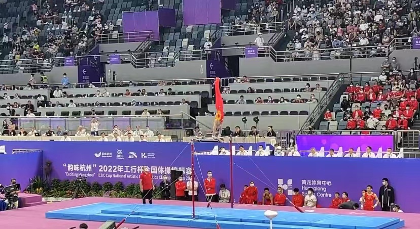 本次比赛于9月4日在黄龙体育馆开赛,共有21支队伍、224名运动员参赛,在这座亚运场馆内展开了一场体操视觉盛宴。9月9日当天进行的是男子跳马、女子平衡木、男子双杠、女子自由体操和男子单杠单项决赛。
