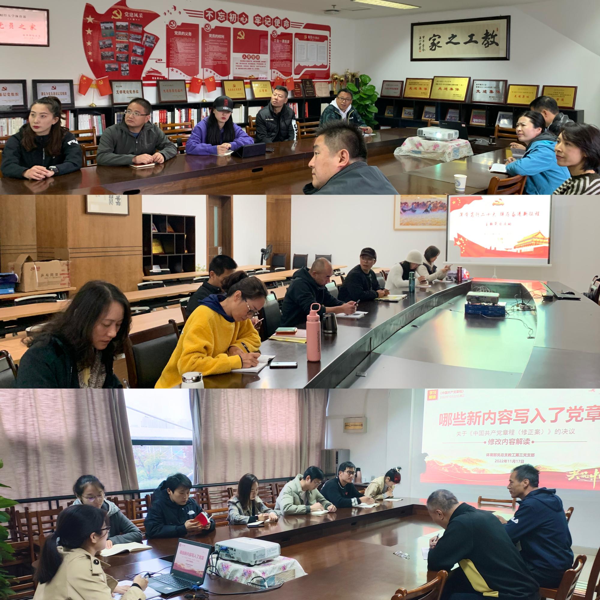 党总支书记汤慧炎表示,要认真学习领会党的二十大精神,将学习成果体现在思想上,落实到行动中,把党的二十大作出的重大决策部署应用到本部门的工作中,团结协作,共同推进体育事业的发展。