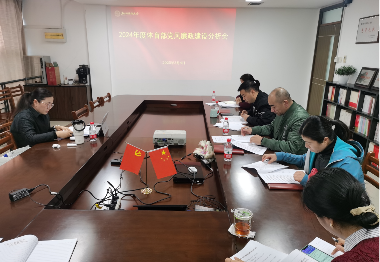 在西体育馆203会议室召开2024年度党风廉政建设情况分析会。校纪委委员叶东惠、部门党总支成员及组织员参加本次会议。会议由党总支书记徐家伟主持。