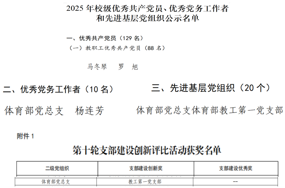 177漫画 公布了《2025年优秀共产党员、优秀党务工作者和先进基层党组织拟推荐对象公示》和《关于公布第十轮支部建设创新评比结果和第五批“双带头人”教师党支部书记示范工作室名单的通知》,177漫画 教工第一党支部获177漫画 先进基层党组织和第十轮支部建设创新奖,杨连芳老师荣获优秀党务工作者,马冬琴和罗旭老师荣获校优秀共产党员。