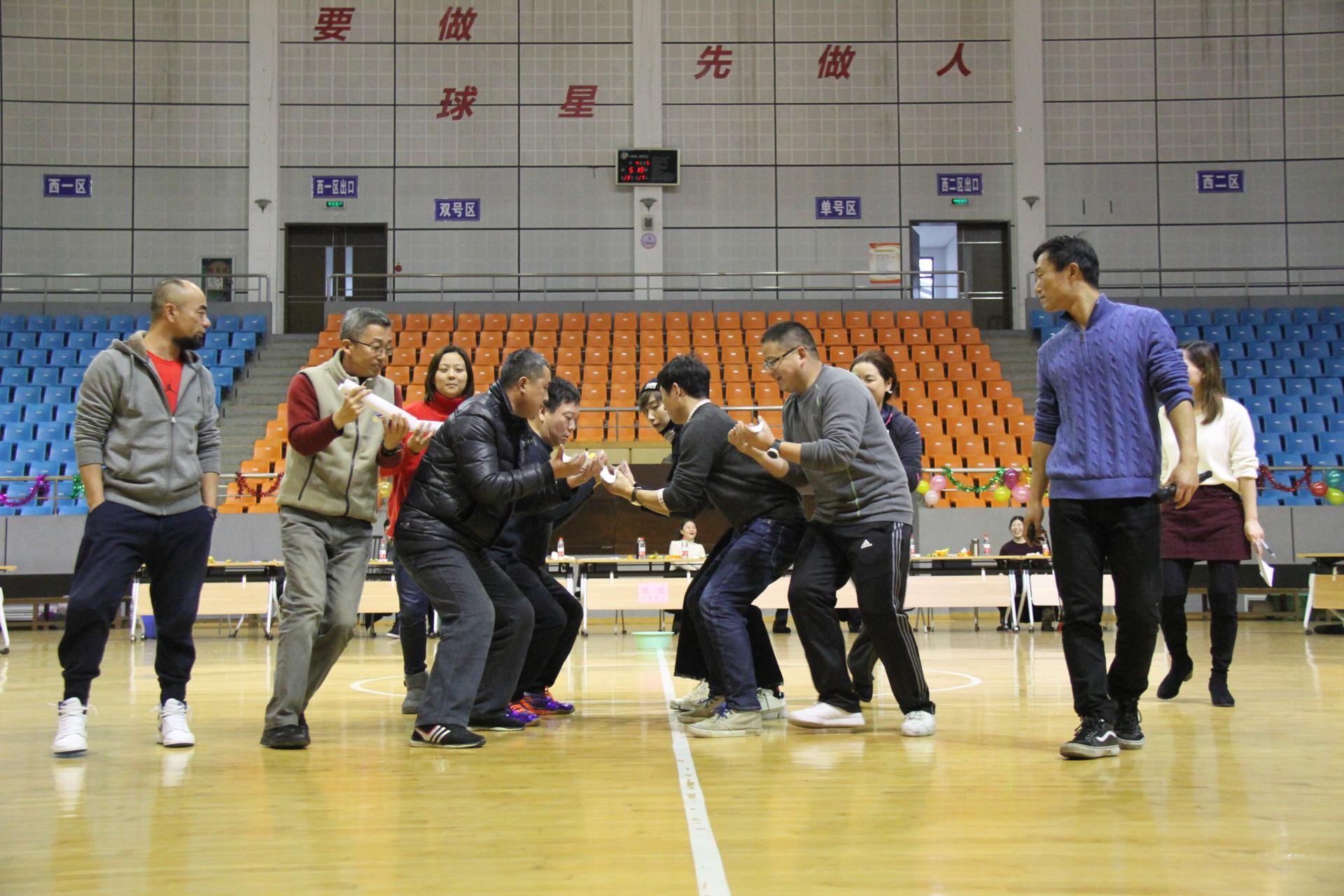 活动期间,篮球馆内欢声笑语不断,高潮迭起。老师们分为青春永驻、飞黄腾达、鸿运当头三队,依次进行手脚并用、你演我猜、球到渠成、欢乐闯关、同心鼓等五项趣味运动项目的比拼。在队长的带领下,大家精心布局,齐心协力,圆满完成小队任务。青春永驻队凭借最高积分获得了本次活动的冠军。